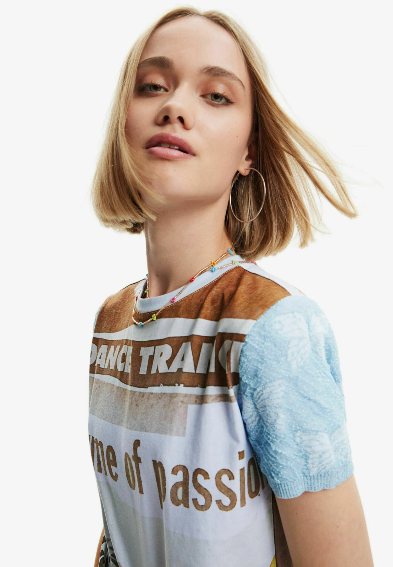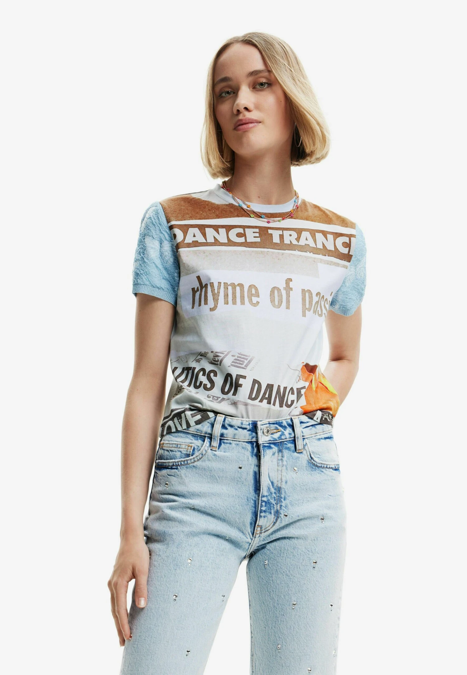 Desigual Textured Newspaper – T-Shirt Print – Blue