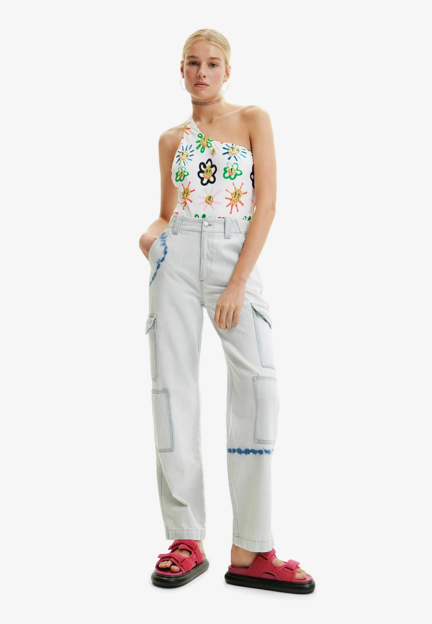 Desigual Tie-Dye Cargo – Straight Leg Jeans – White