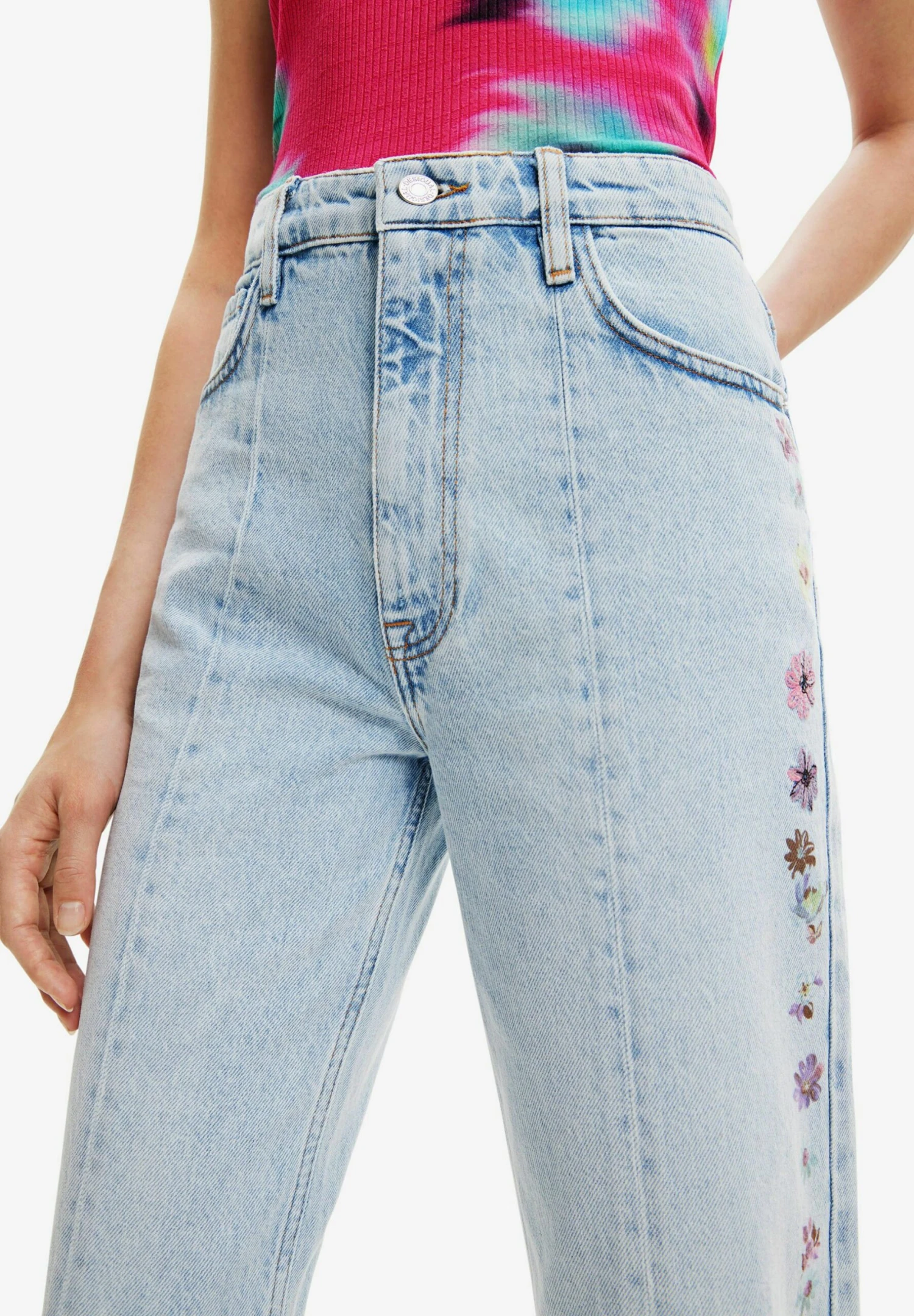 Desigual Wide-Leg Flower – Flared Jeans – Blue